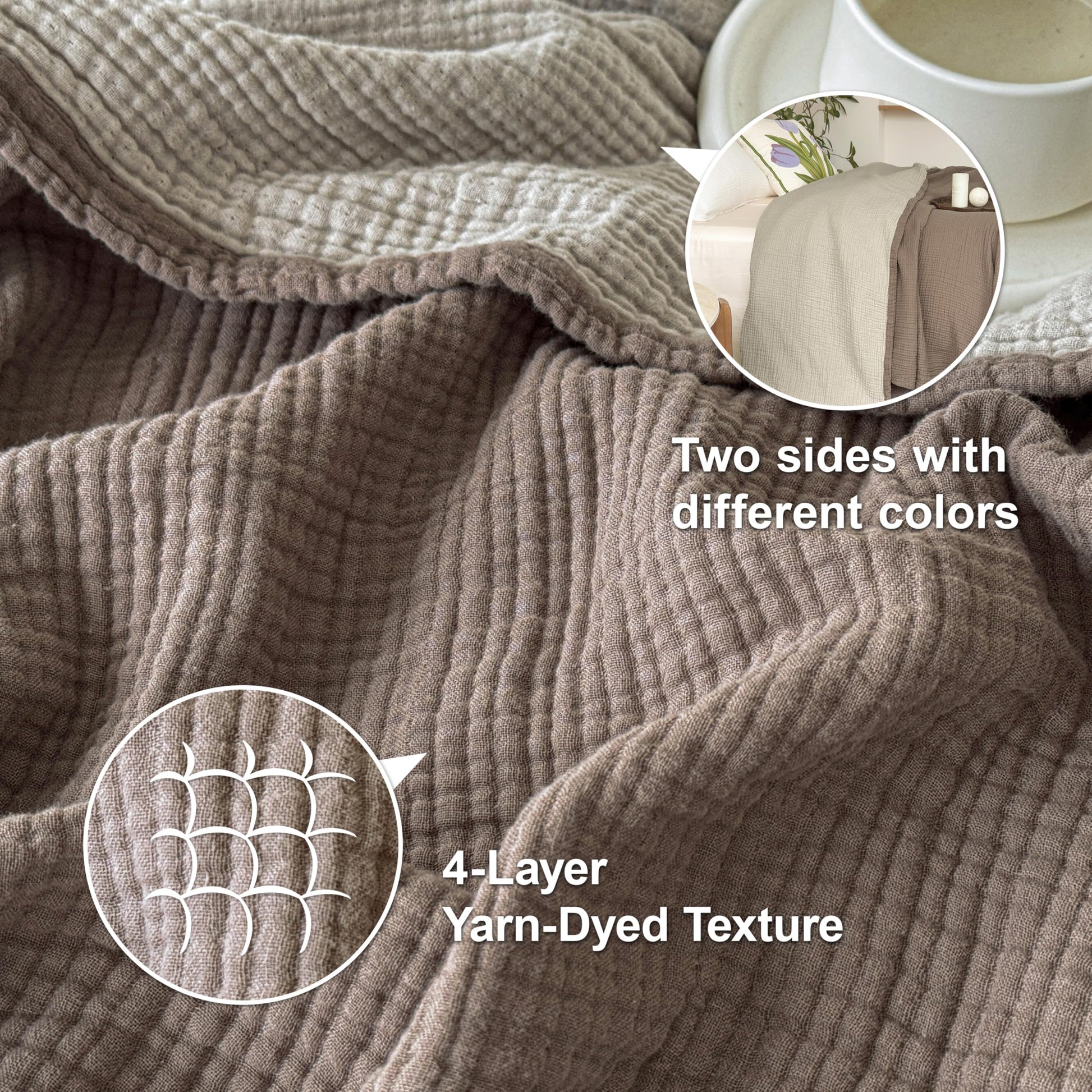 4-Layer Gauze Cotton Blanket - Lightweight & Breathable Twin Size