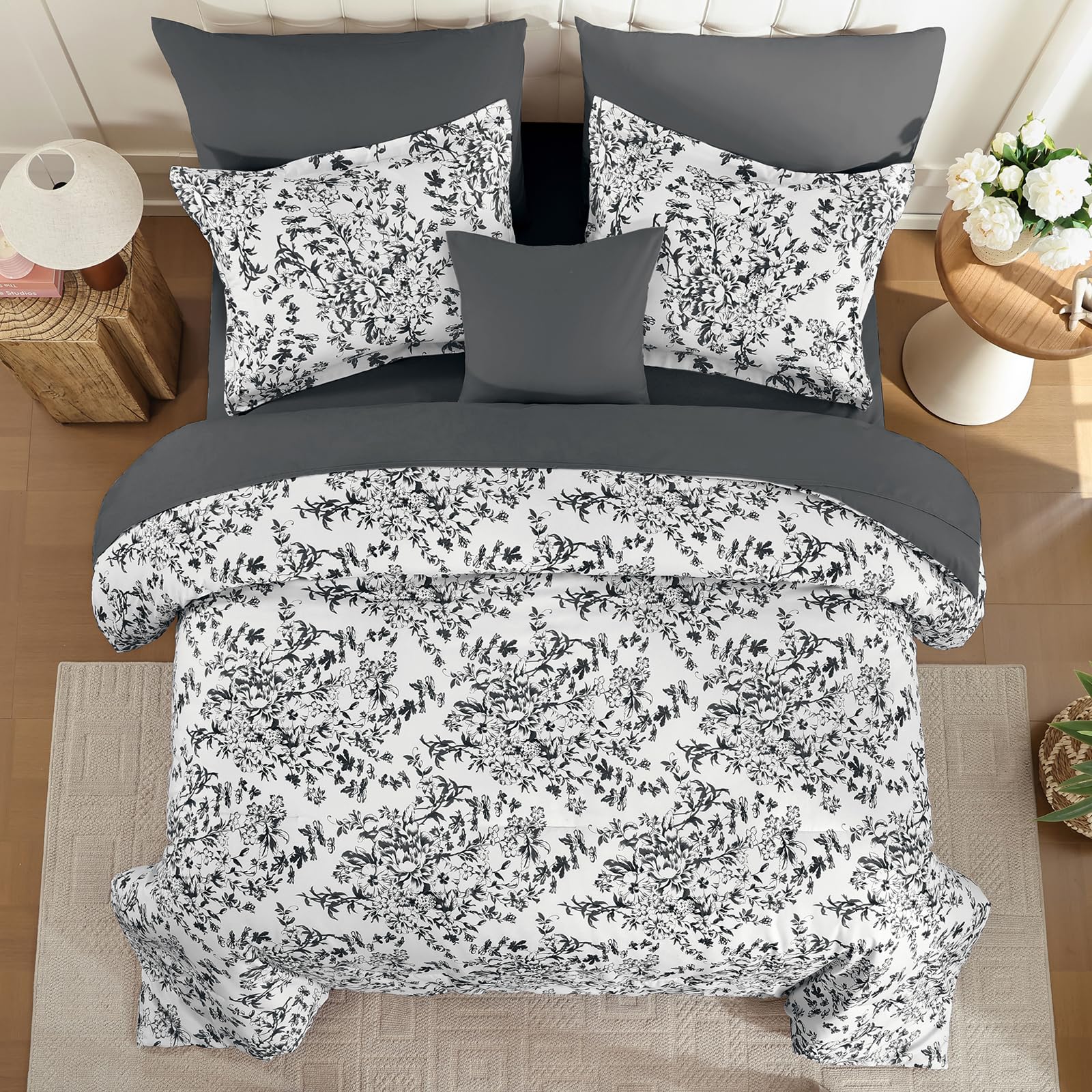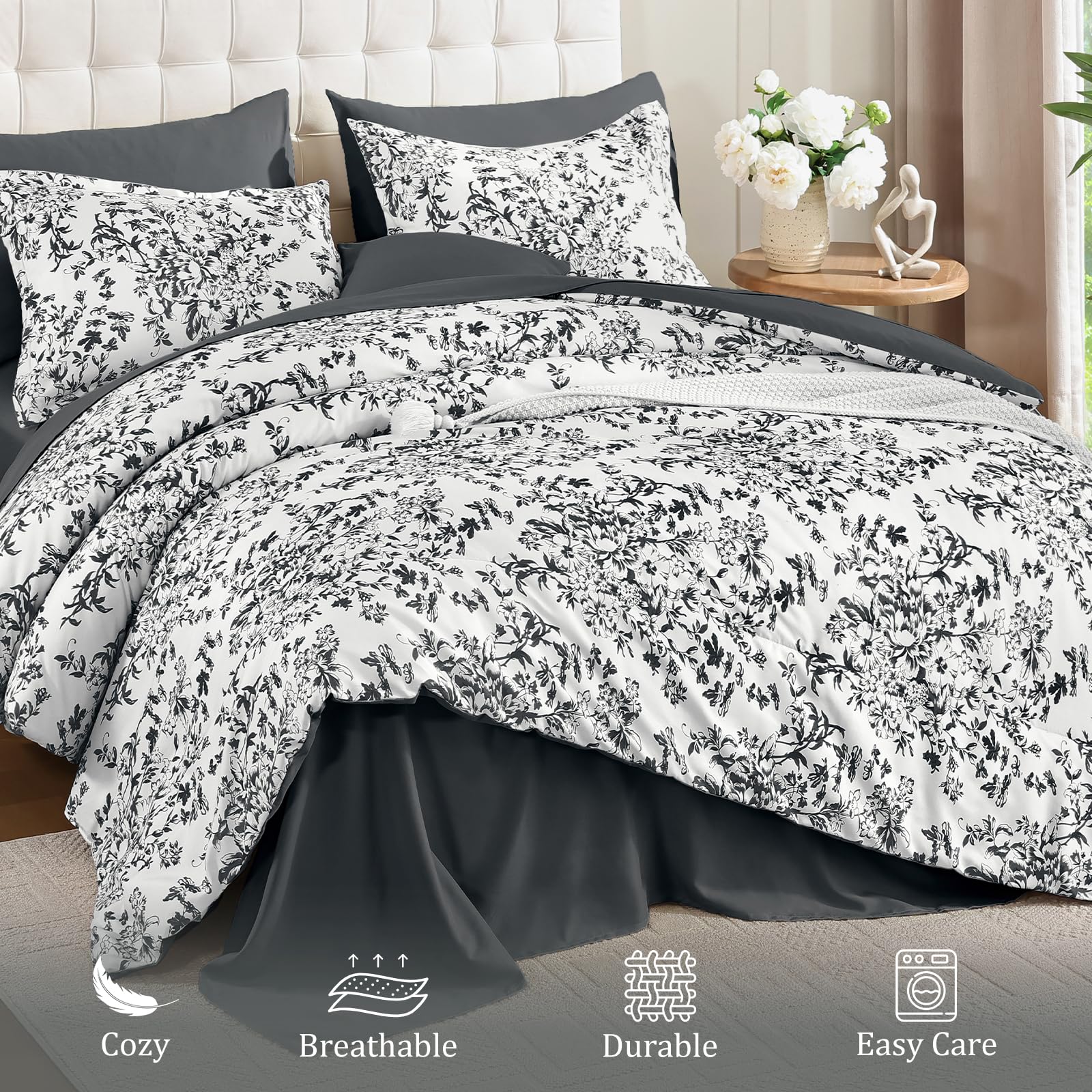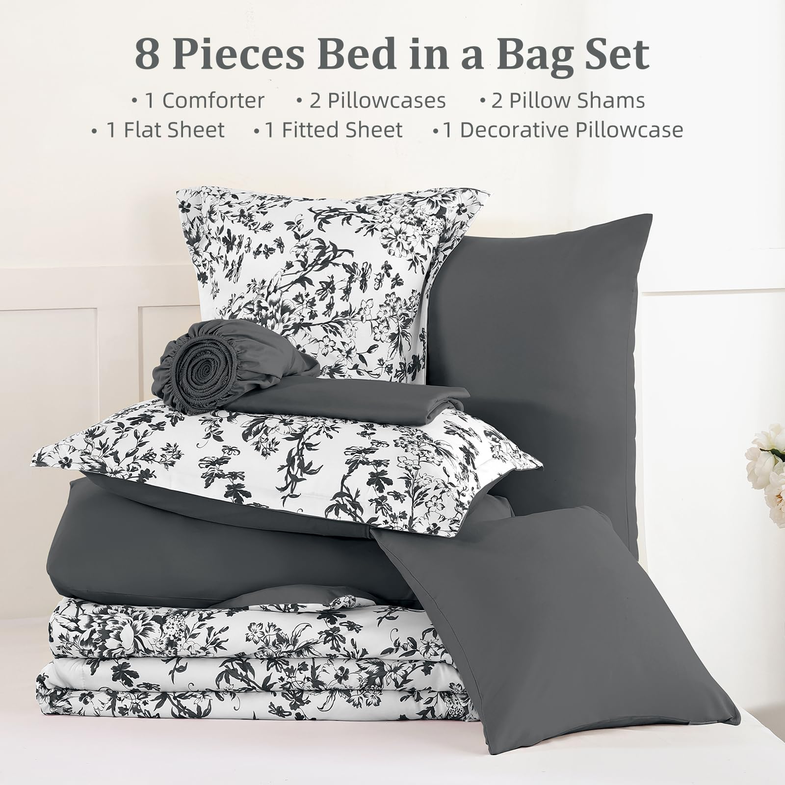 Transform your bedroom into a serene retreat with this floral comforter set, featuring delicate botanical patterns on soft microfiber. The complete 8-piece ensemble offers lightweight comfort for all seasons, combining elegant design with practical functionality for a restful sleep experience.