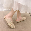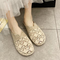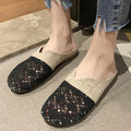 Breathable Linen Slippers - Floral Cut-Out & Non-Slip Sole