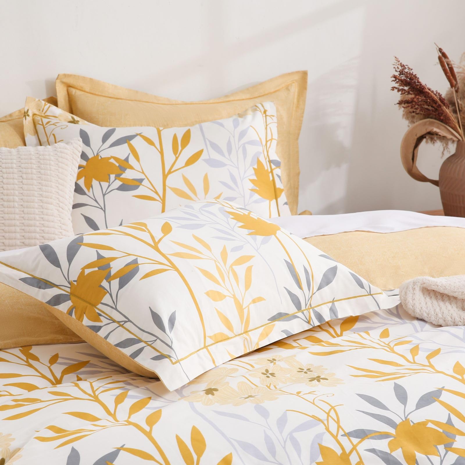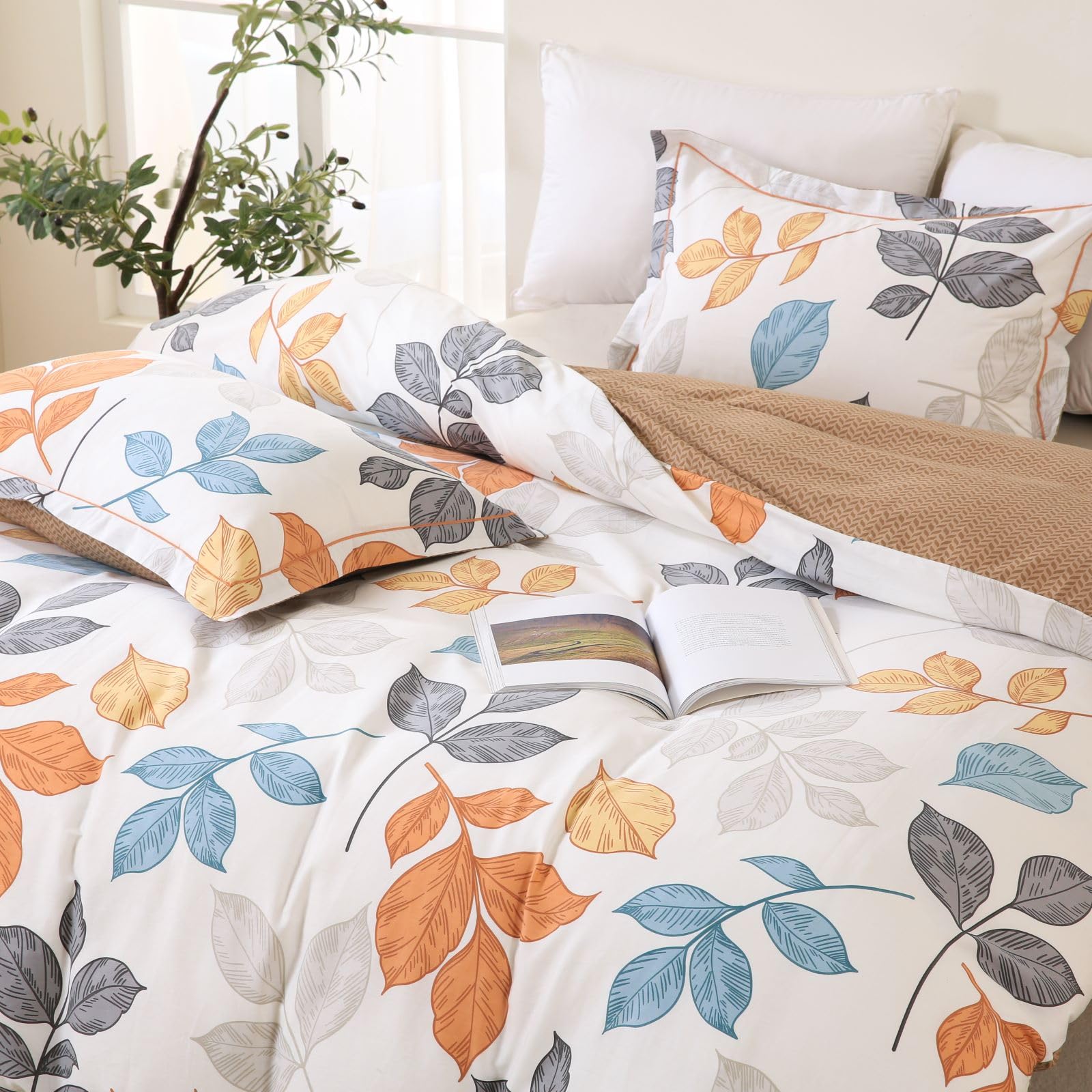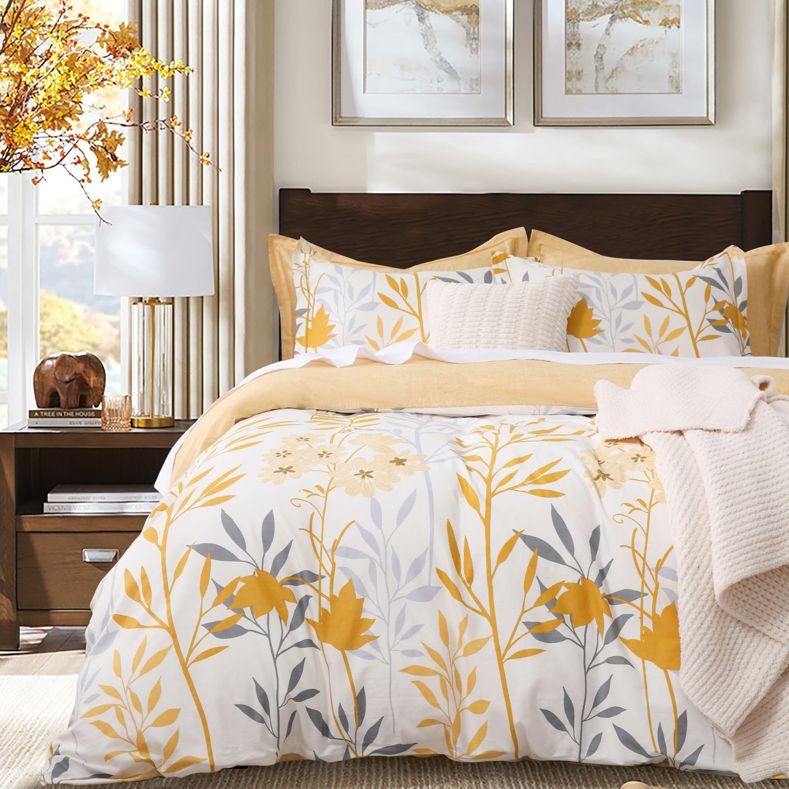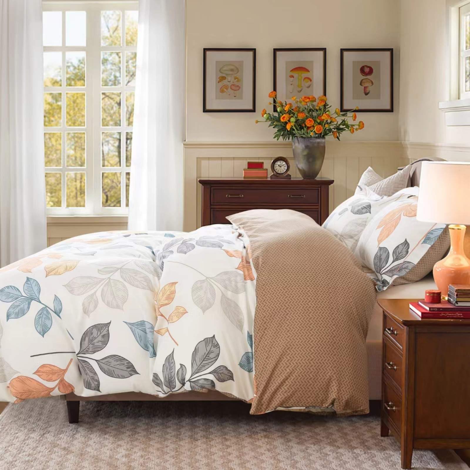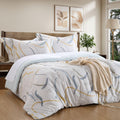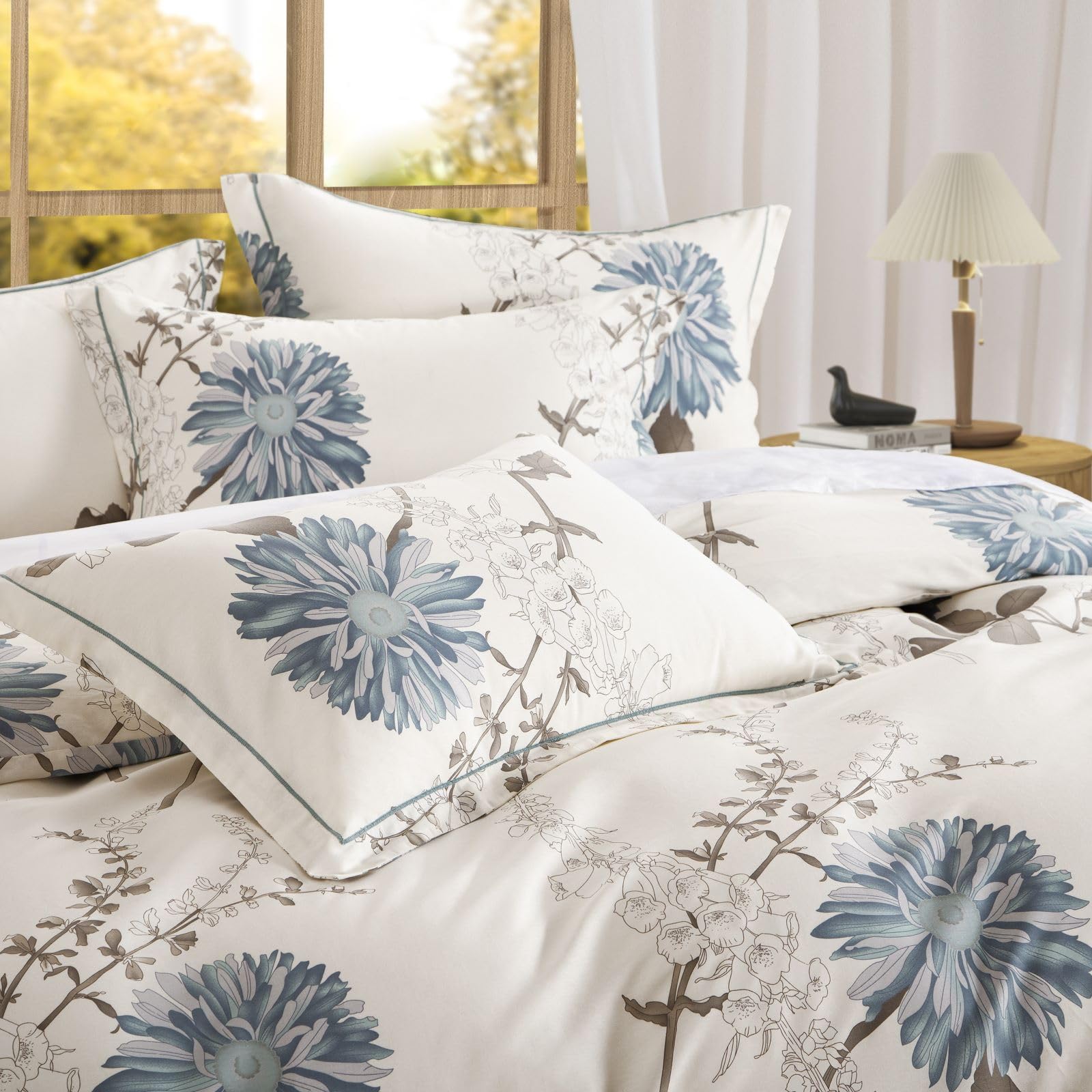Wrap your bedroom in natural comfort with this 100% cotton comforter set, featuring delicate brown branches and blue flowers on an off-white background. The lightweight design and breathable cotton shell create a balanced sleep environment, perfect for year-round coziness.