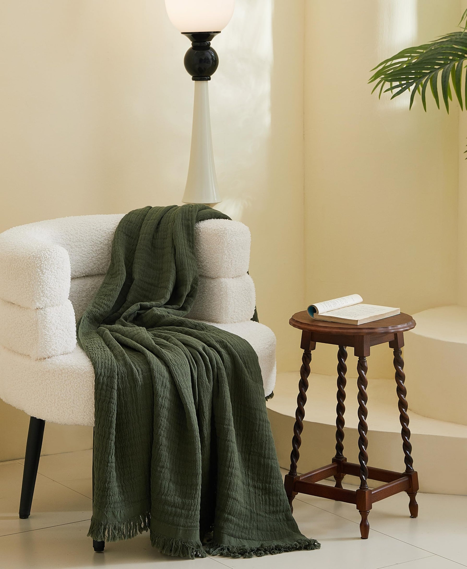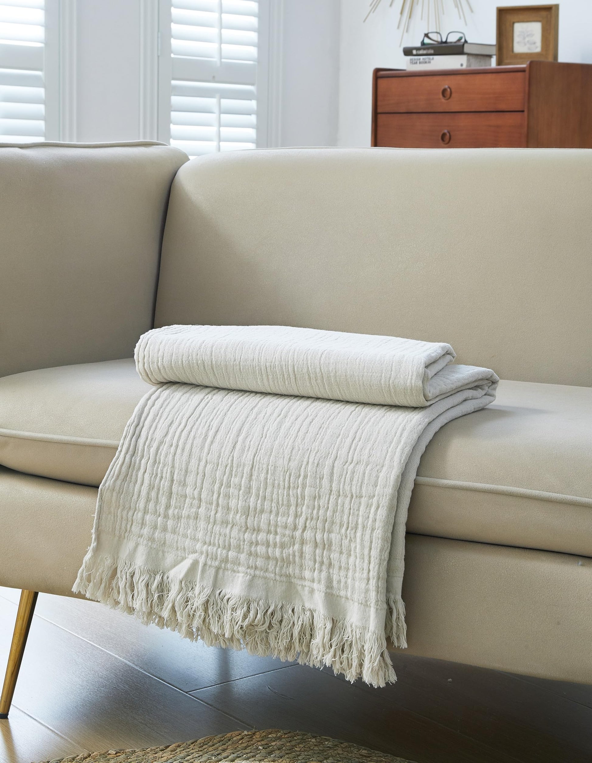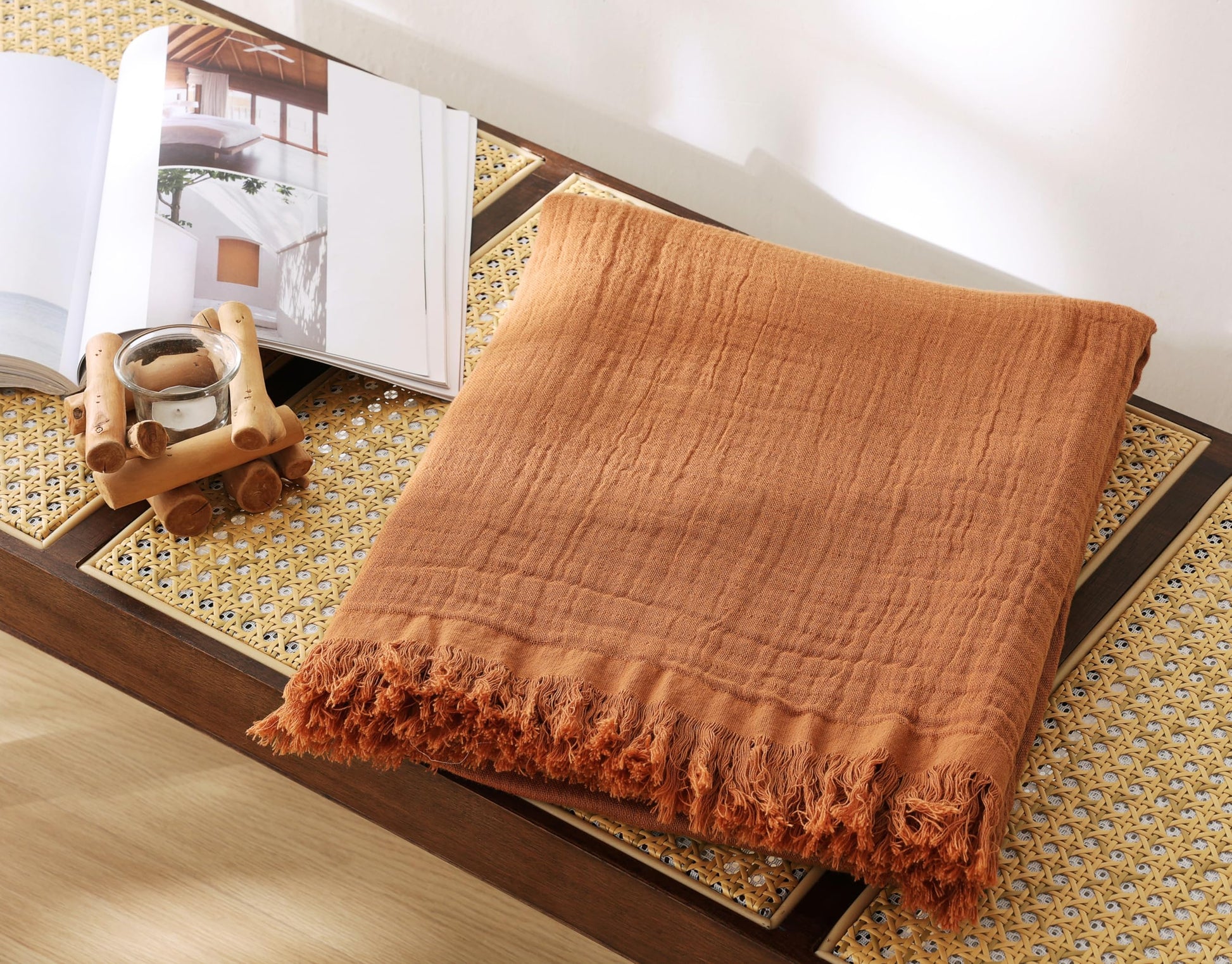 Embrace lightweight comfort with our pre-washed muslin throw, crafted from 100% cotton gauze for breathable warmth in every season. The delicate tassel edges and soft texture make it ideal for cozy moments on the couch, lazy mornings in bed, or as a stylish decorative layer.