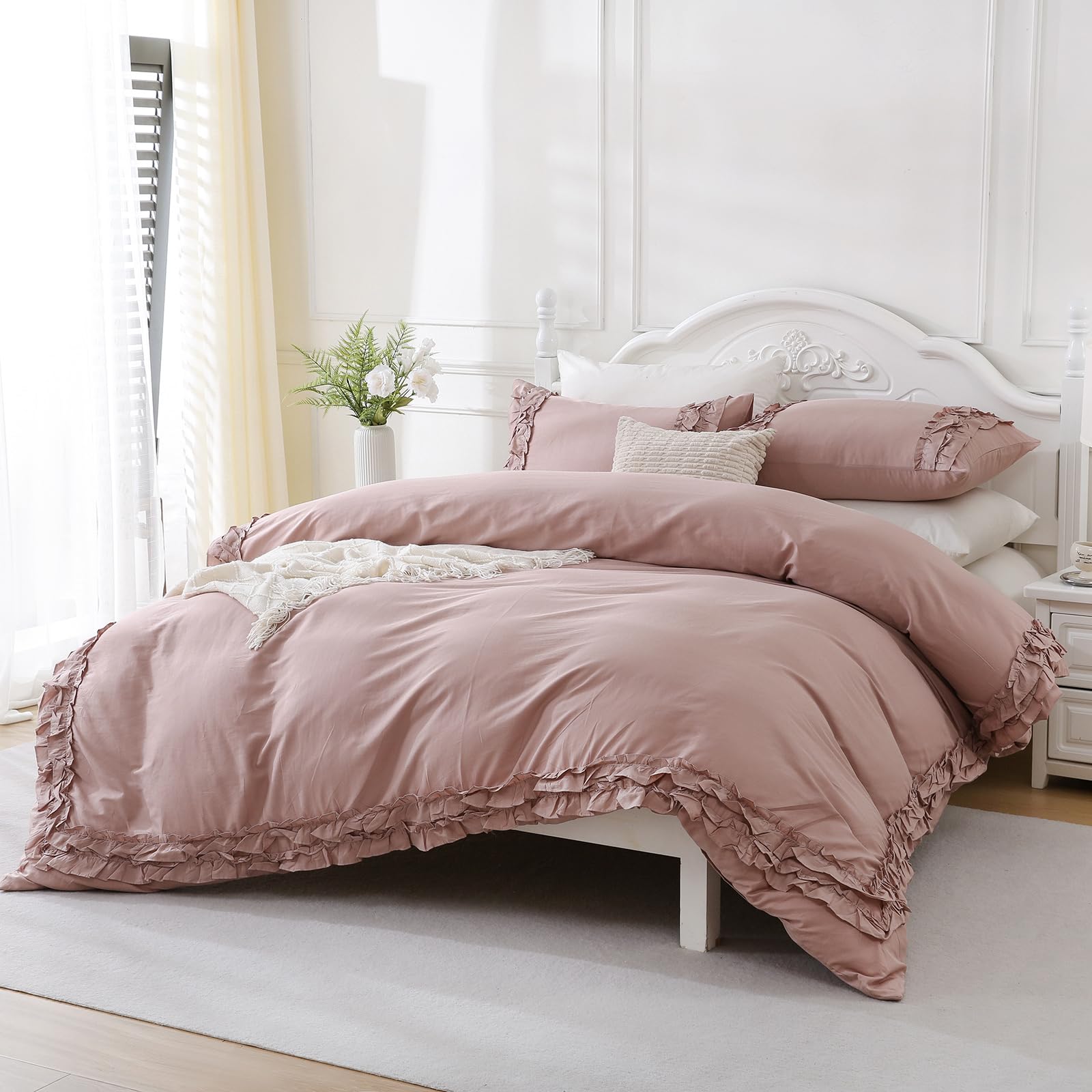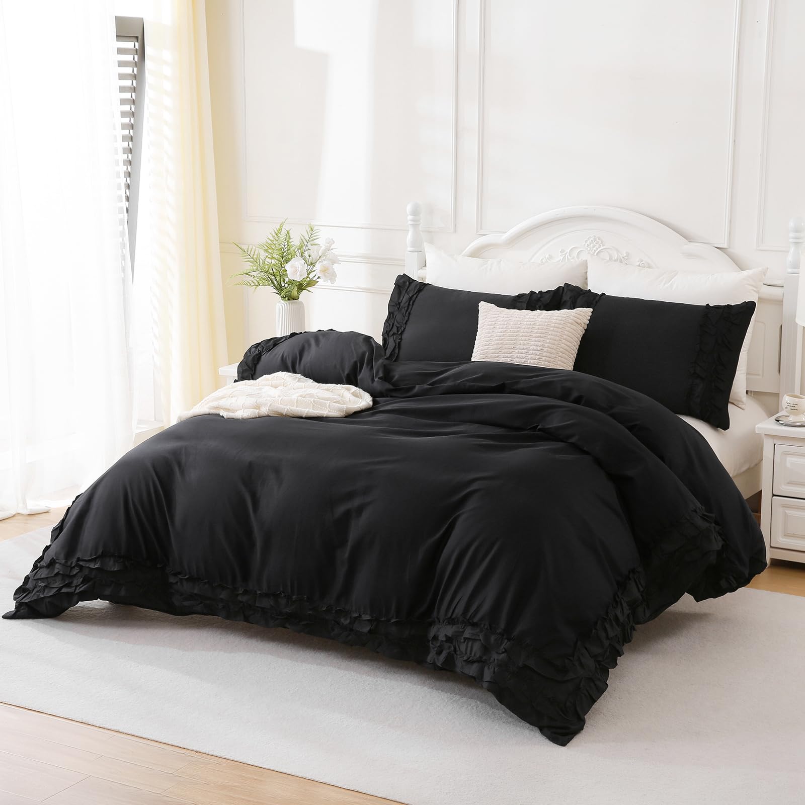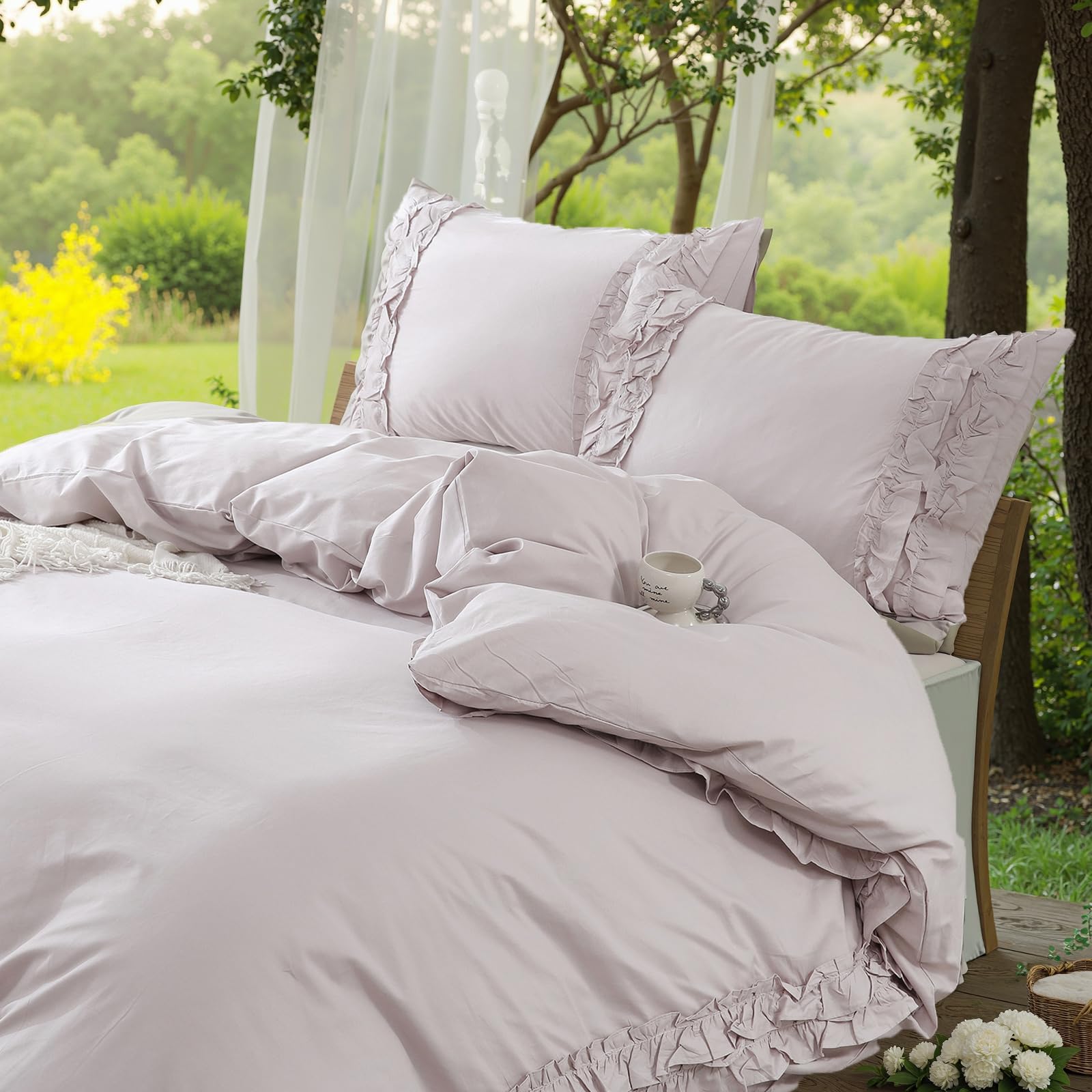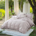 Wrap your bedroom in soft, breathable comfort with this 100% cotton comforter set featuring delicate layered ruffles. Designed for year-round use, the lightweight cotton and fluffy fill balance warmth with airflow, creating a cozy yet fresh sleep environment.