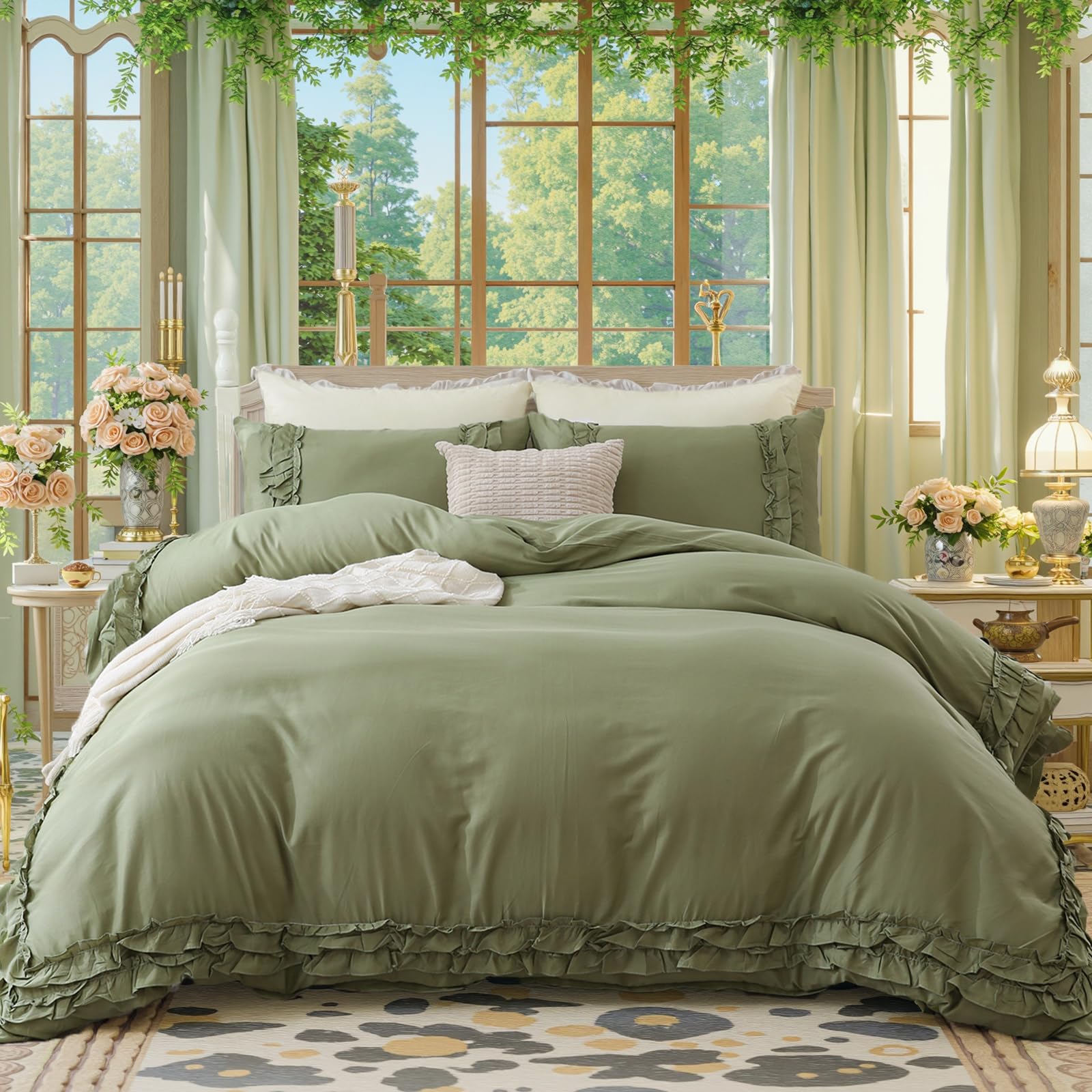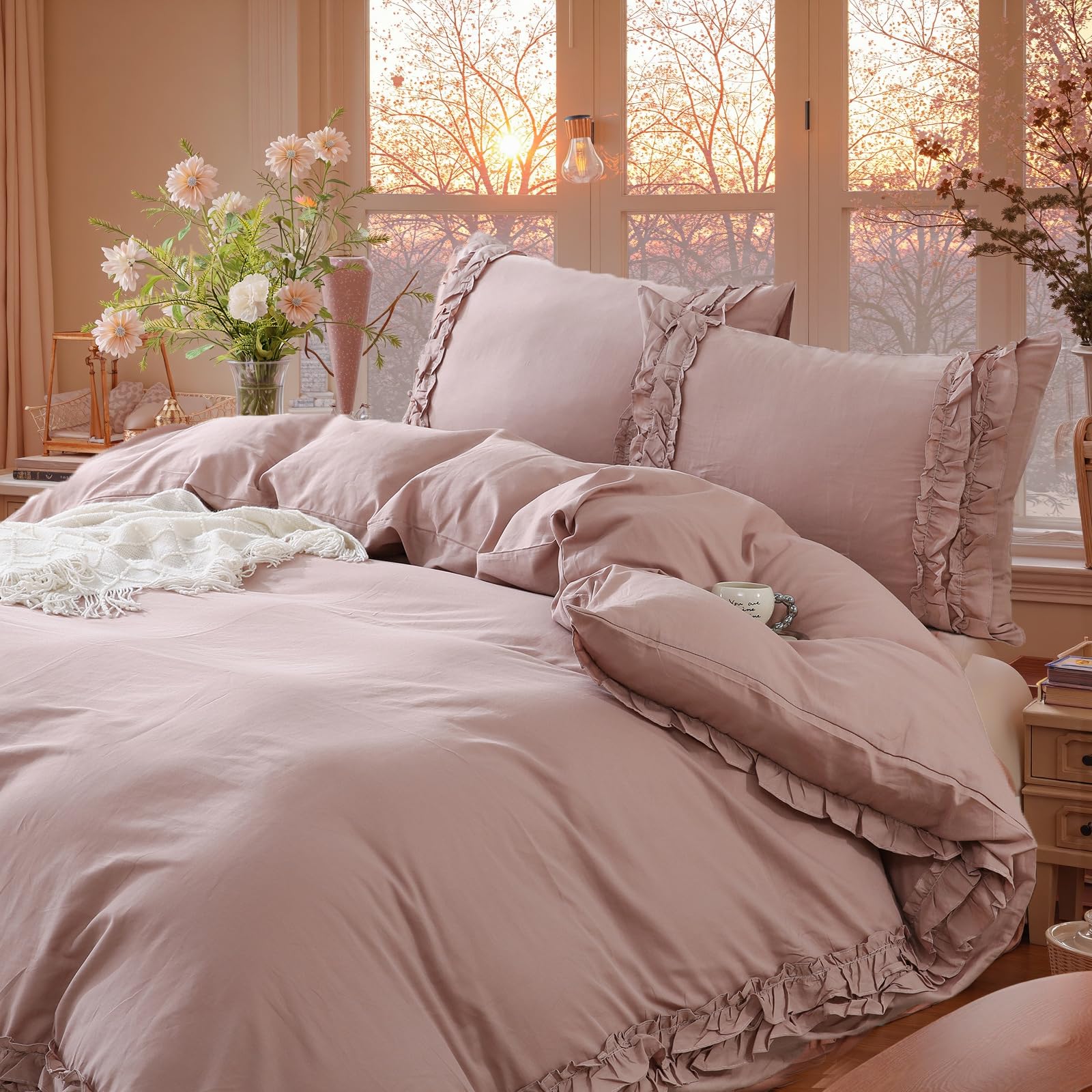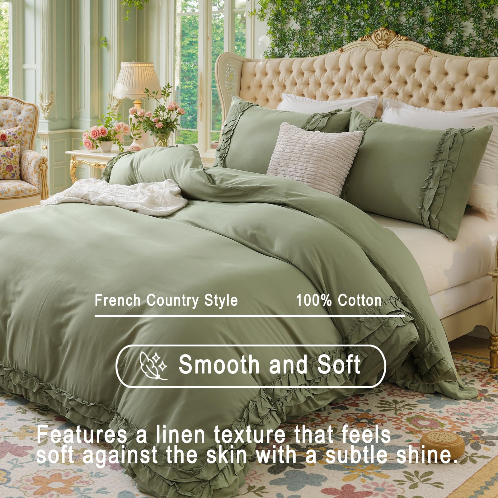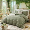Wrap your bedroom in soft, breathable comfort with this 100% cotton comforter set featuring delicate layered ruffles. Designed for year-round use, the lightweight cotton and fluffy fill balance warmth with airflow, creating a cozy yet fresh sleep environment.
