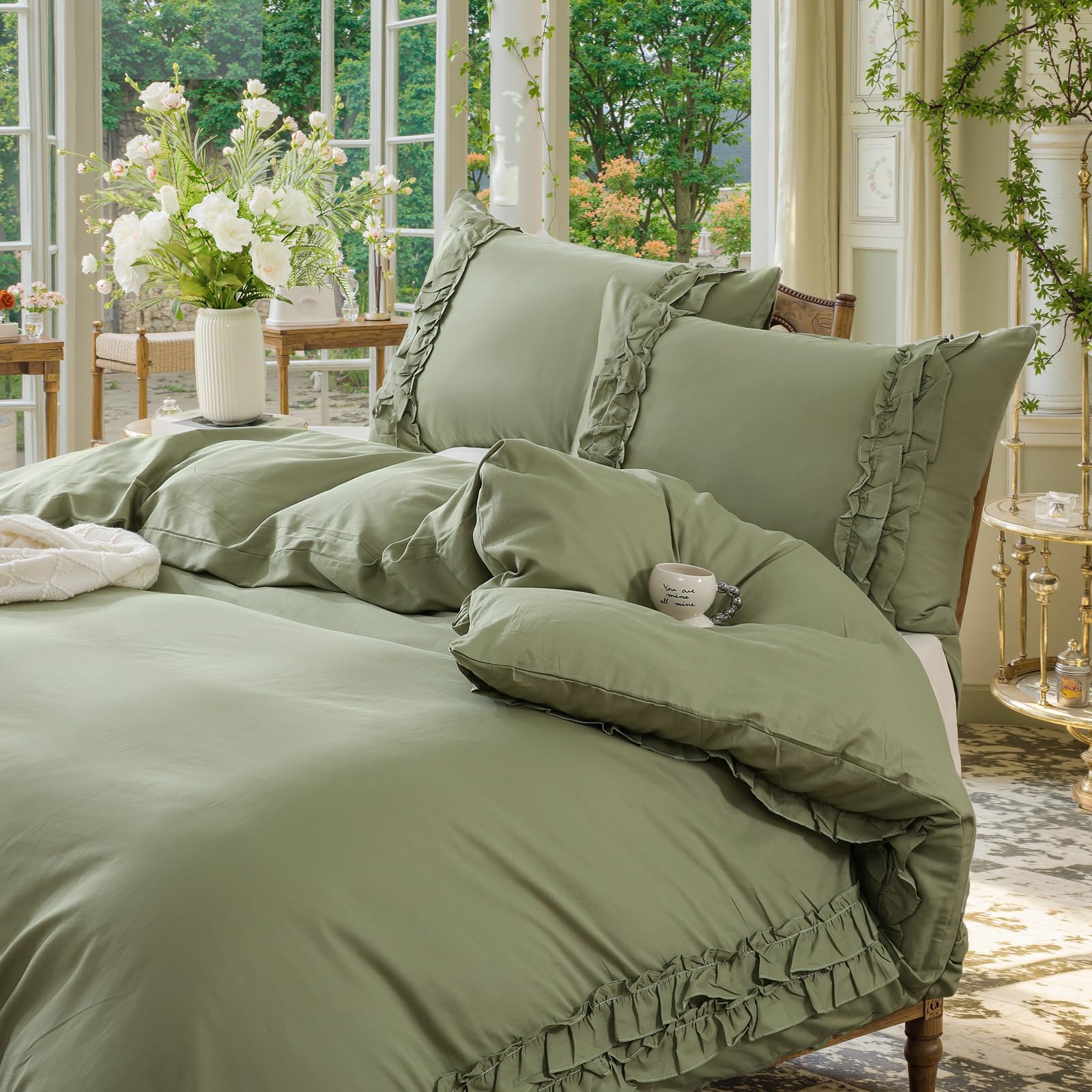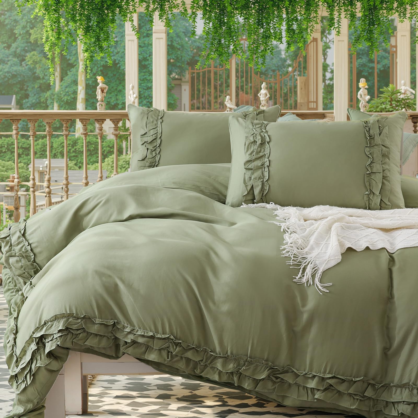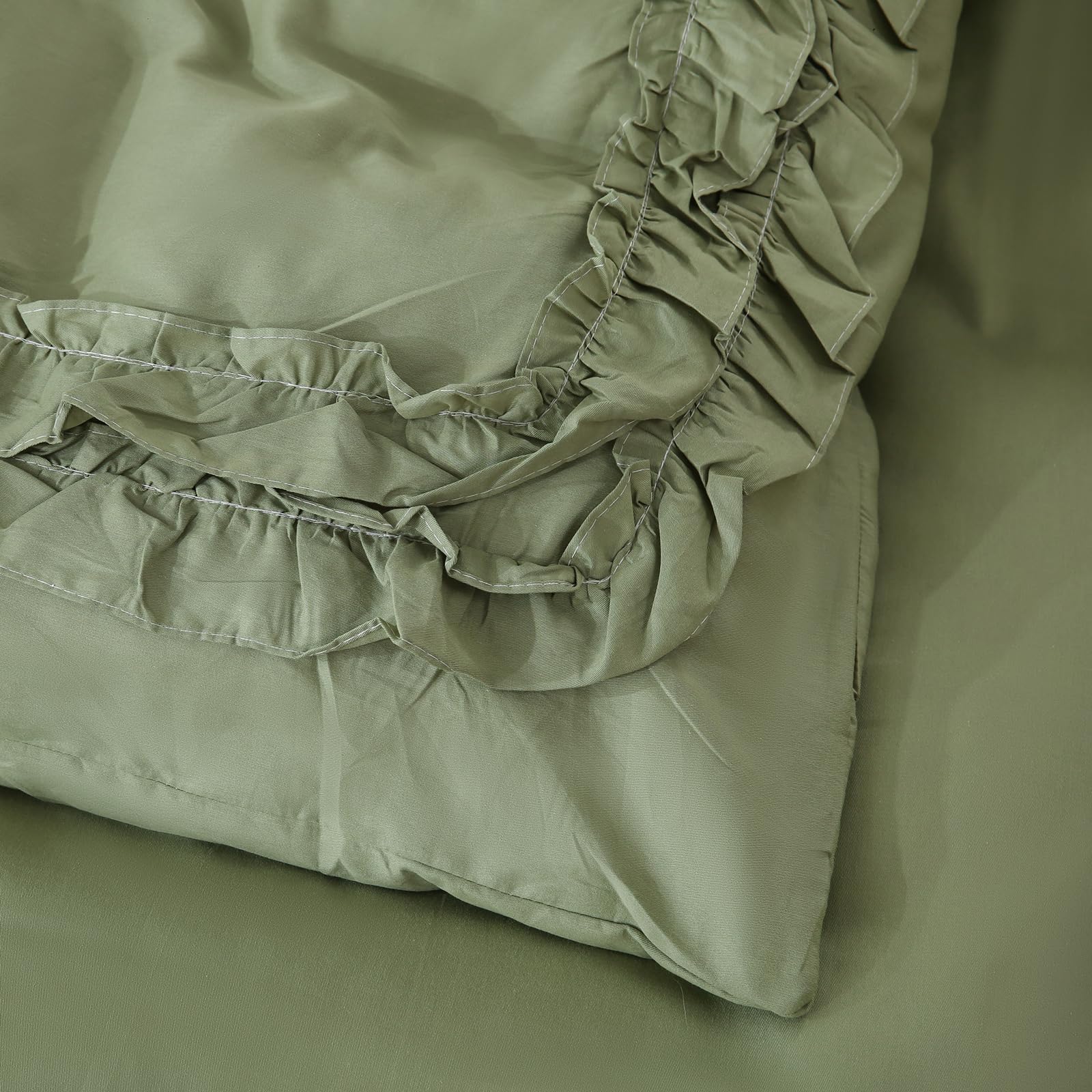 - Double-layer ruffle trim adds texture and farmhouse charm