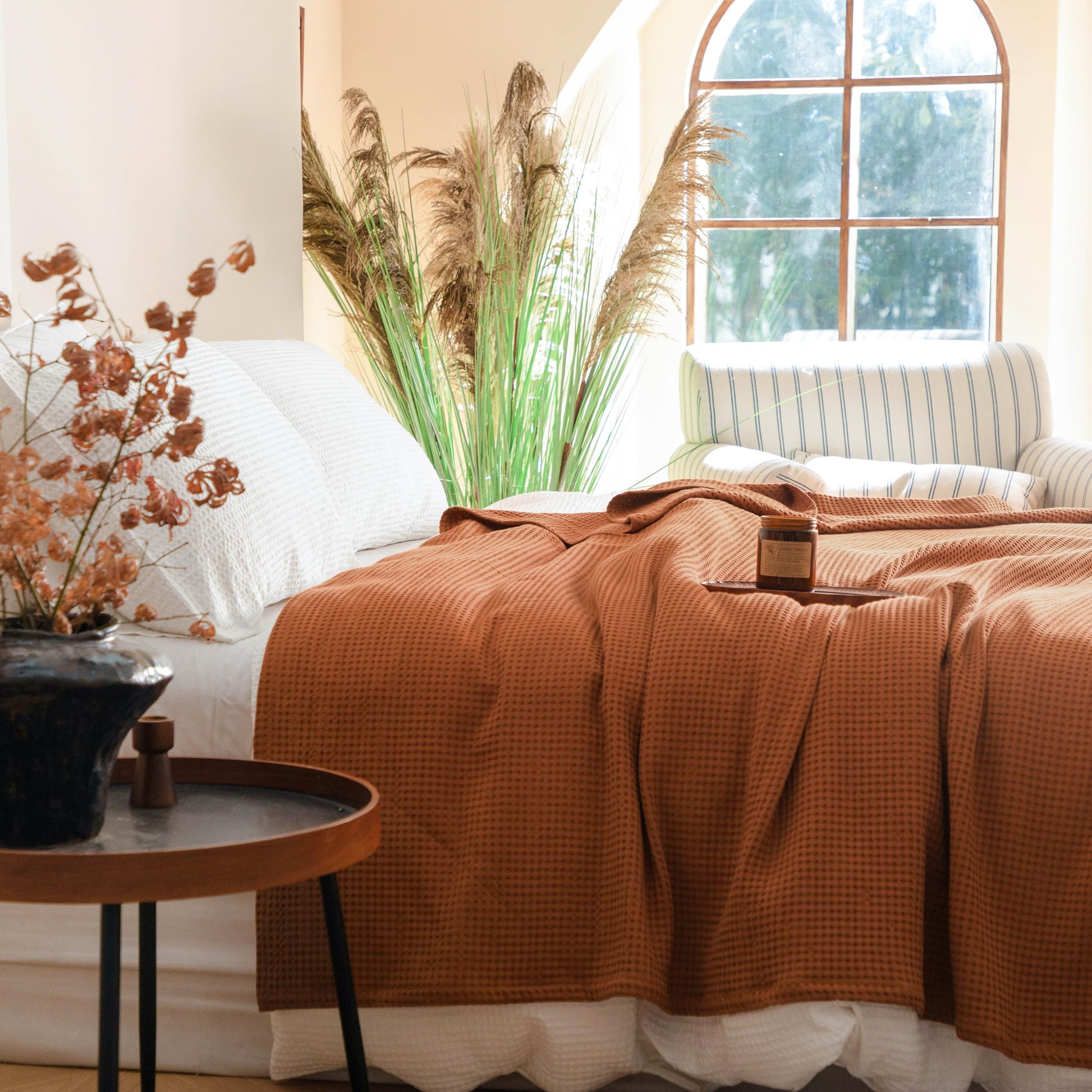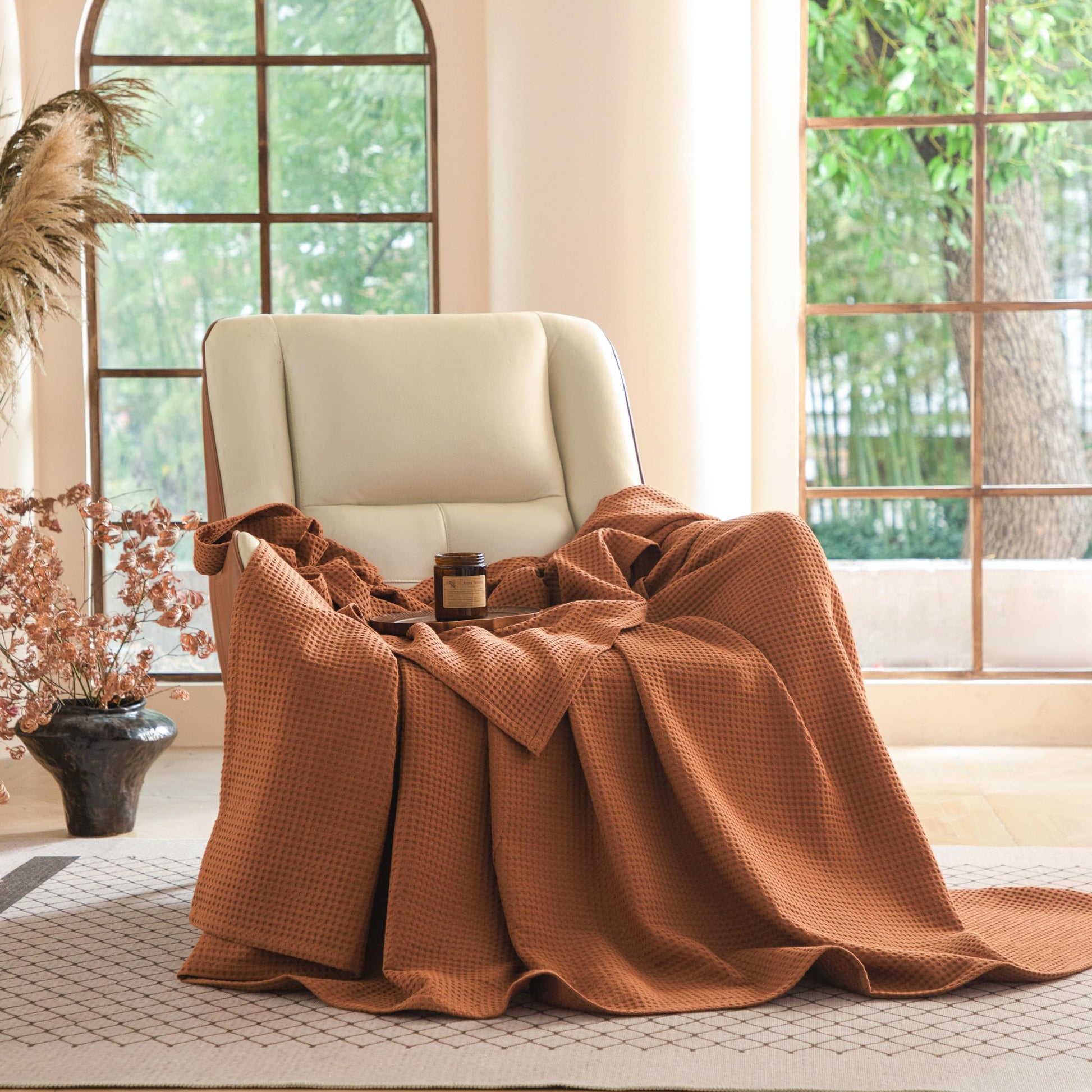 Cotton Waffle Weave Throw - Lightweight & Breathable