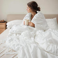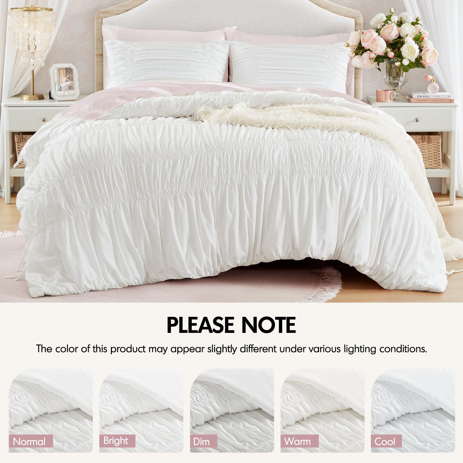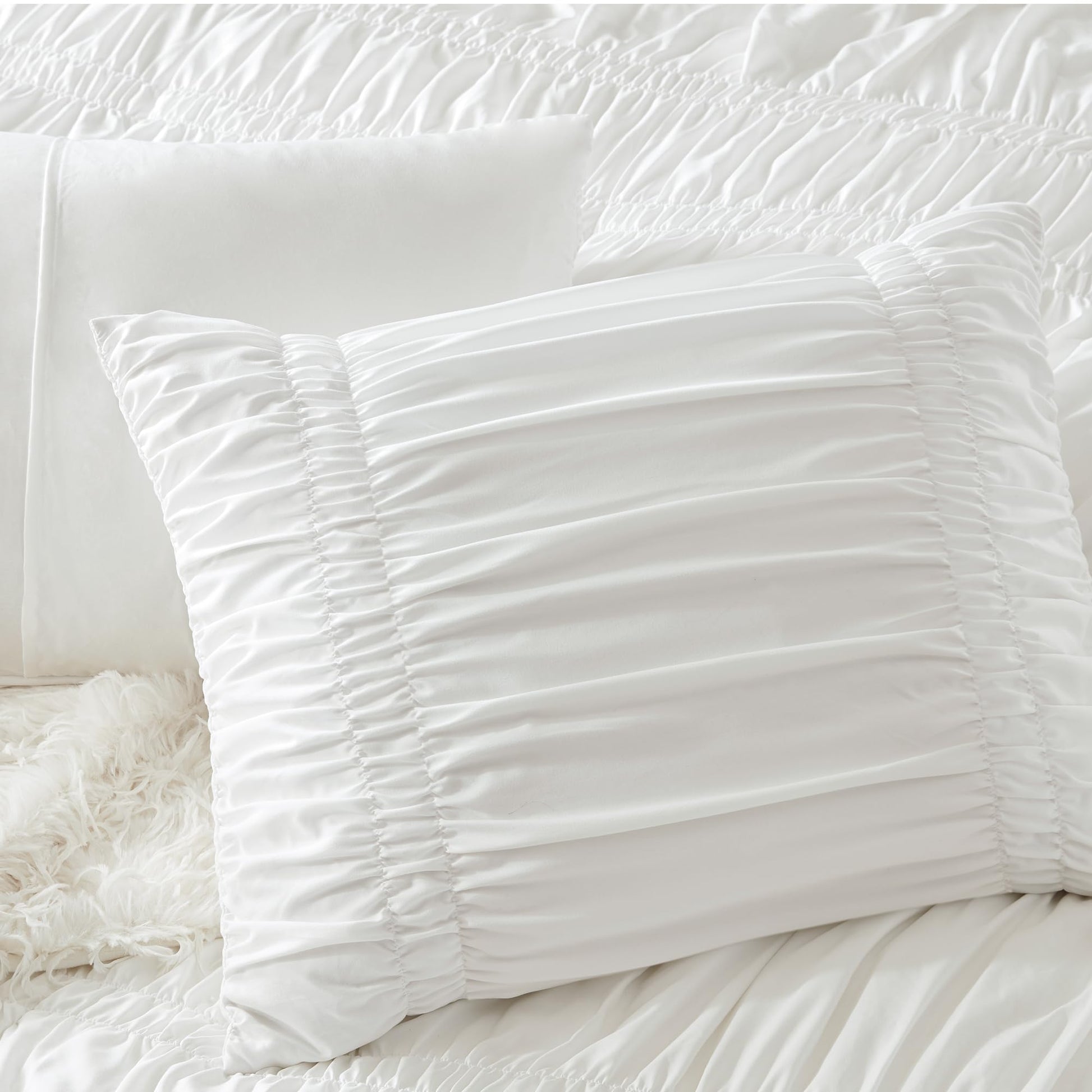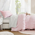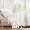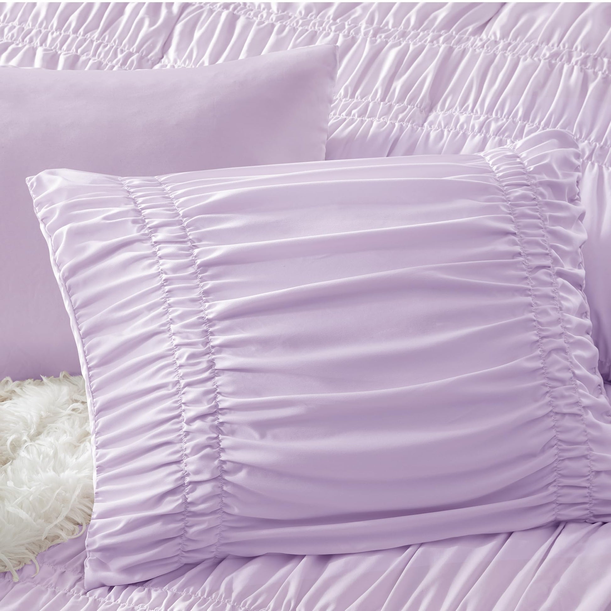 Embrace the gentle charm of French country style with this ruched comforter set, designed to bring softness and romance to your bedroom. The pre-washed microfiber fabric and lightweight fill offer year-round comfort, while delicate bow accents add a touch of shabby-chic elegance.