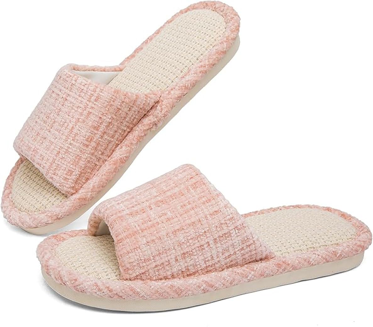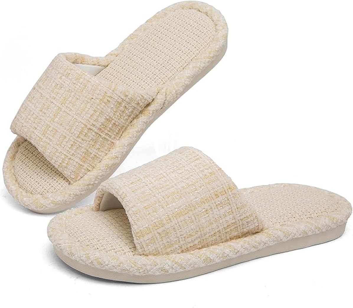 Linen Blend Slide Slippers - Open-Toe & Non-Slip Sole