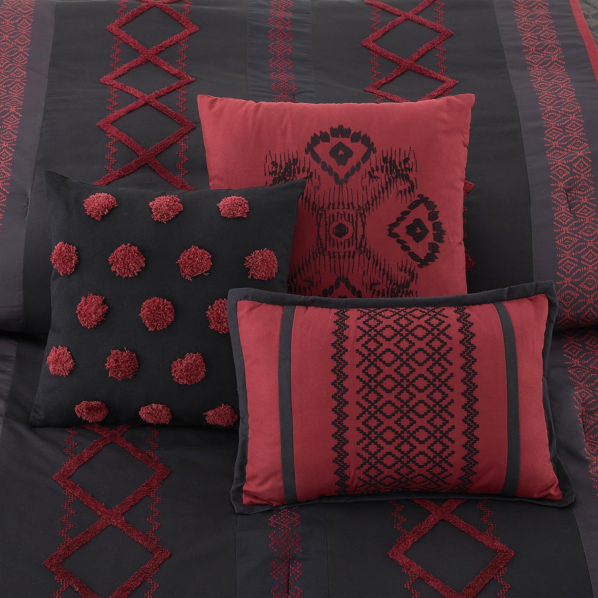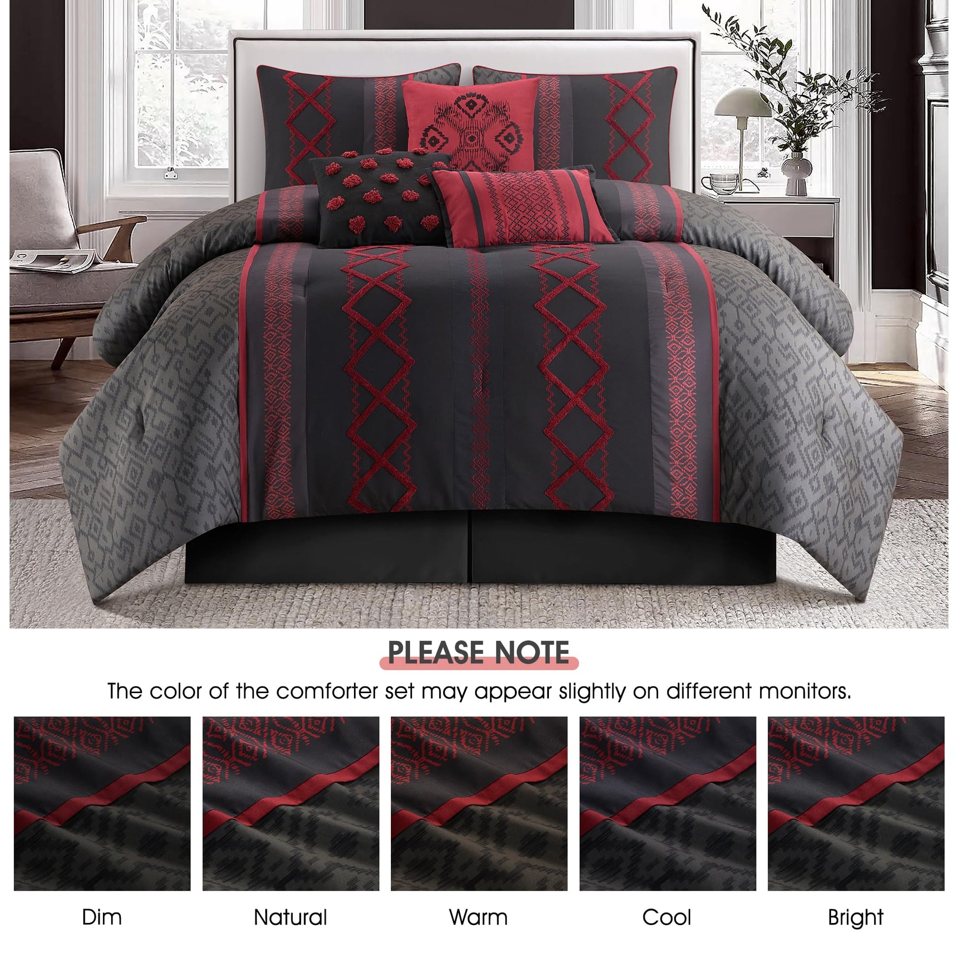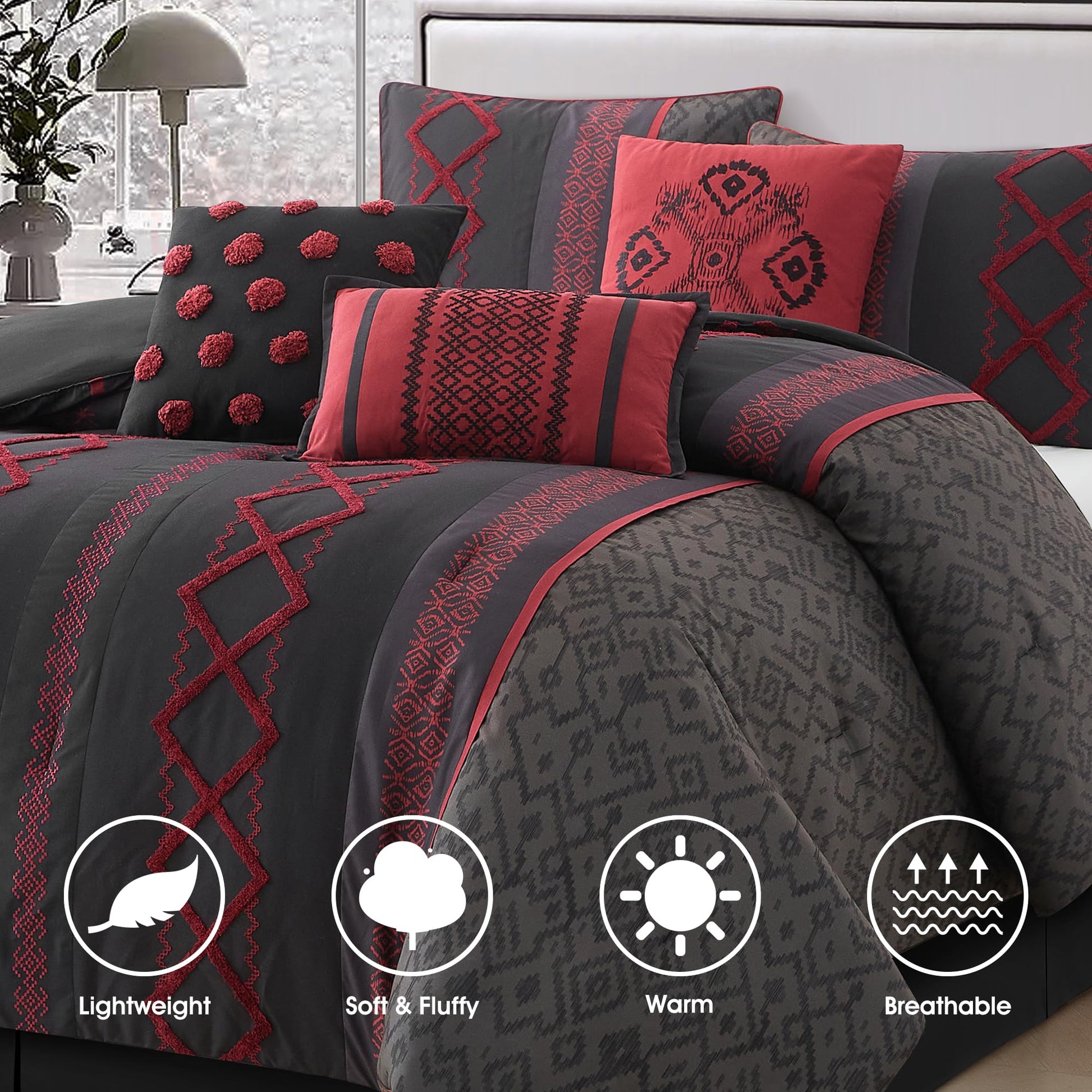 Transform your bedroom into a serene retreat with this taupe comforter set, featuring subtle geometric embroidery and textured terry details. Designed for year-round comfort, the complete 7-piece collection blends softness, durability, and understated elegance for a restful sleep experience.