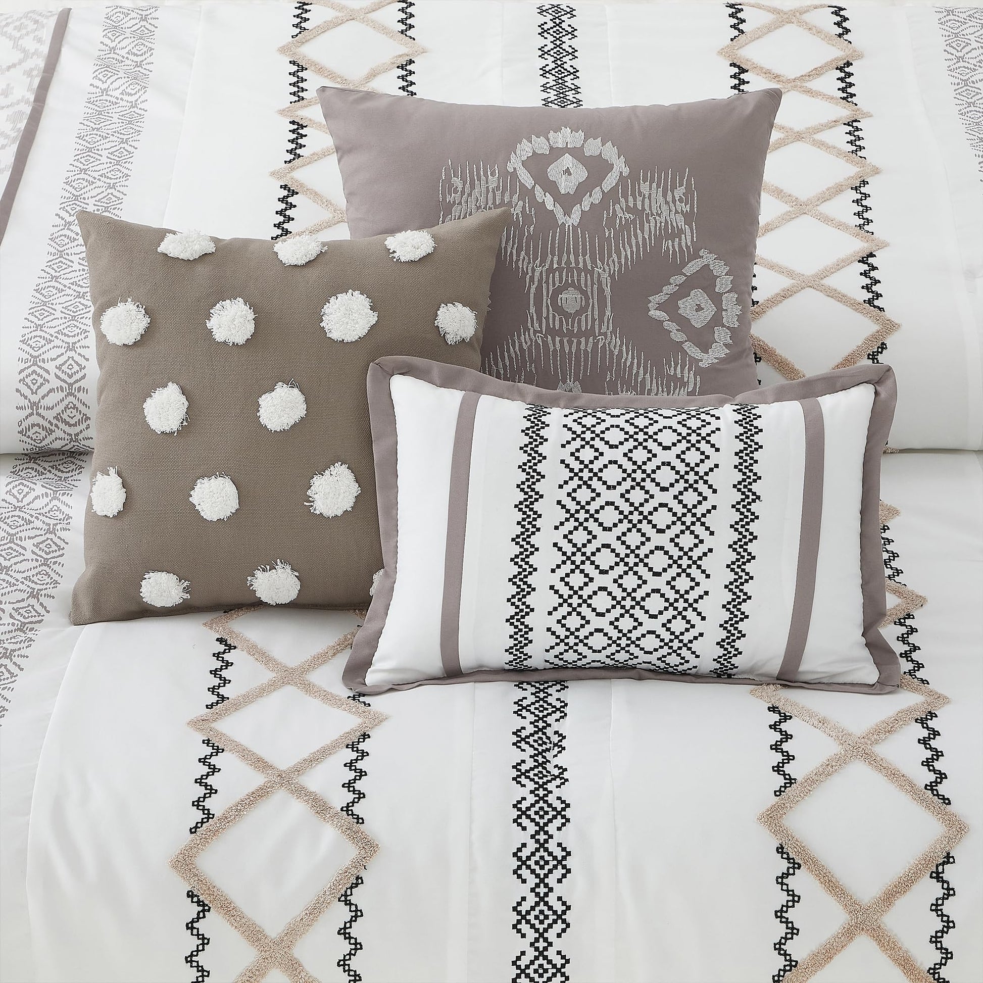 Taupe Comforter - Geometric Embroidered 7-Piece Set
