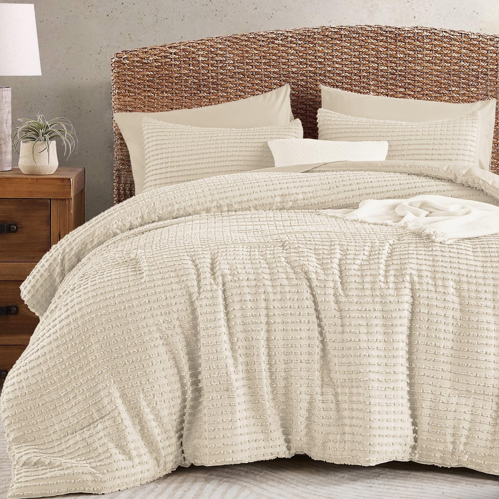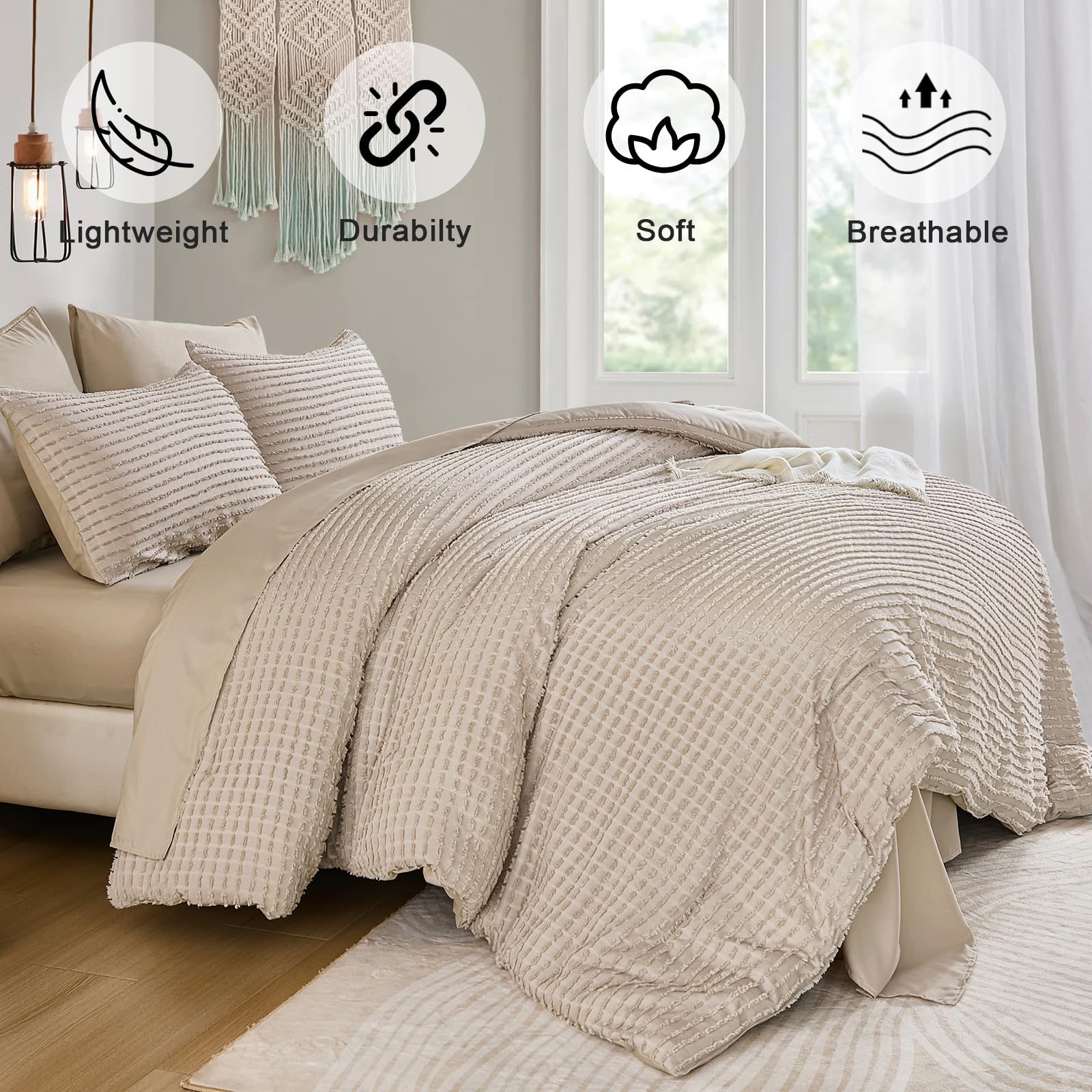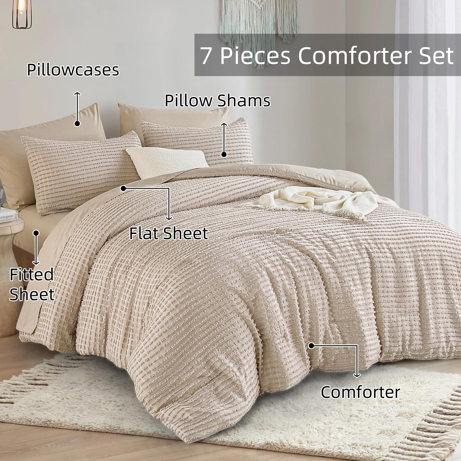 Elevate your bedroom with this textured comforter set featuring sophisticated tufted geometric patterns. Woven from plush jacquard microfiber, the complete 7-piece ensemble combines visual depth with everyday comfort, creating a cozy retreat that's both stylish and practical.