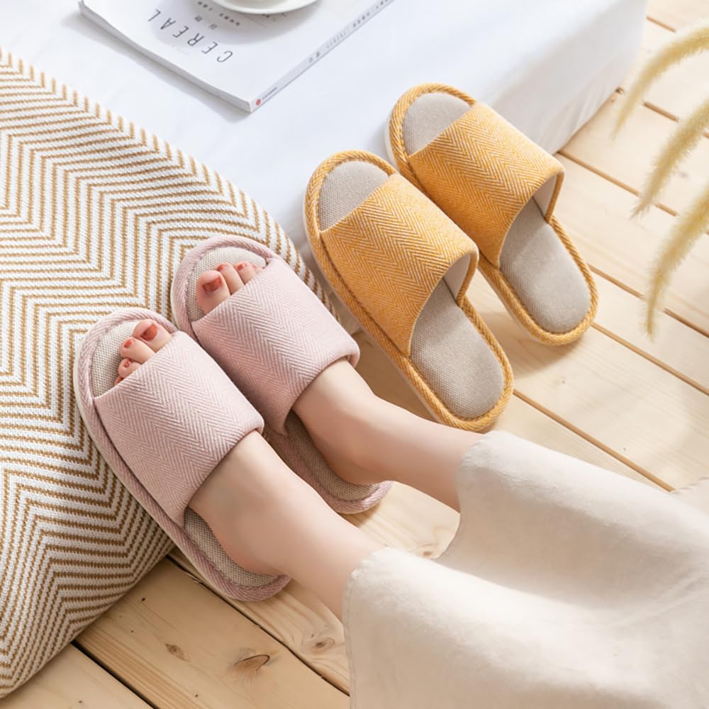 Unisex Memory Foam Slippers - Open-Toe Linen Blend