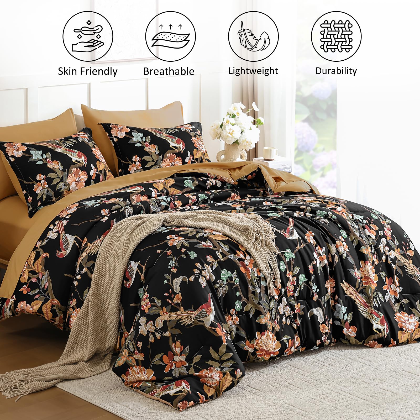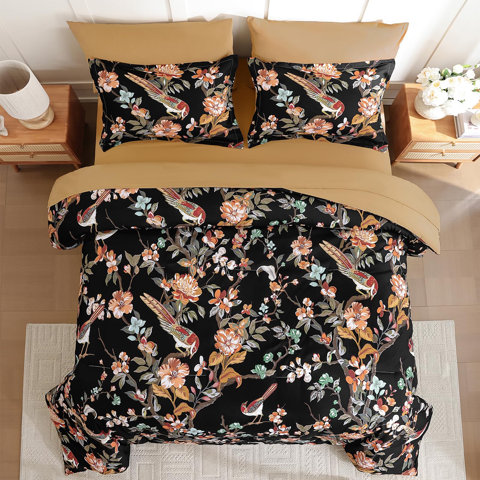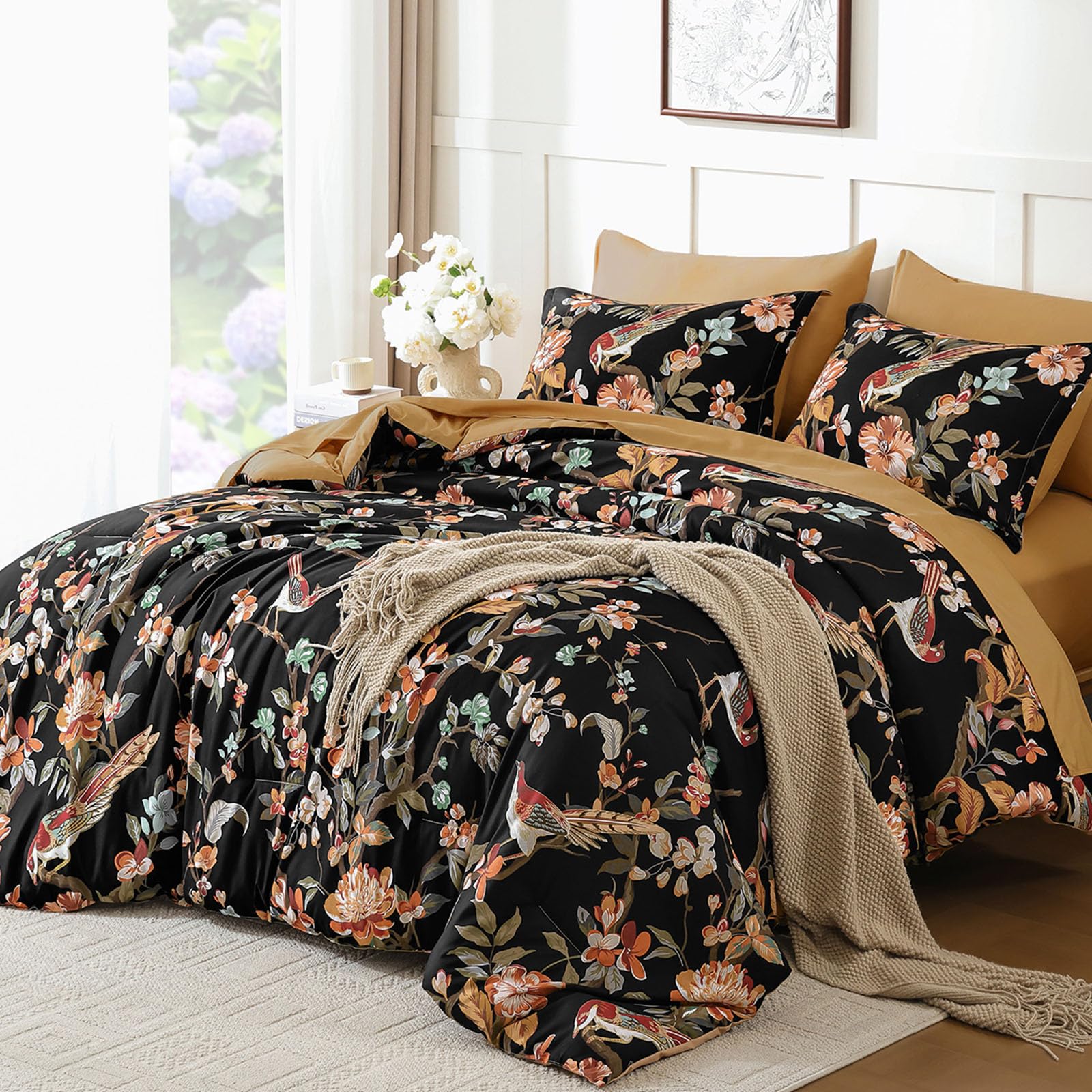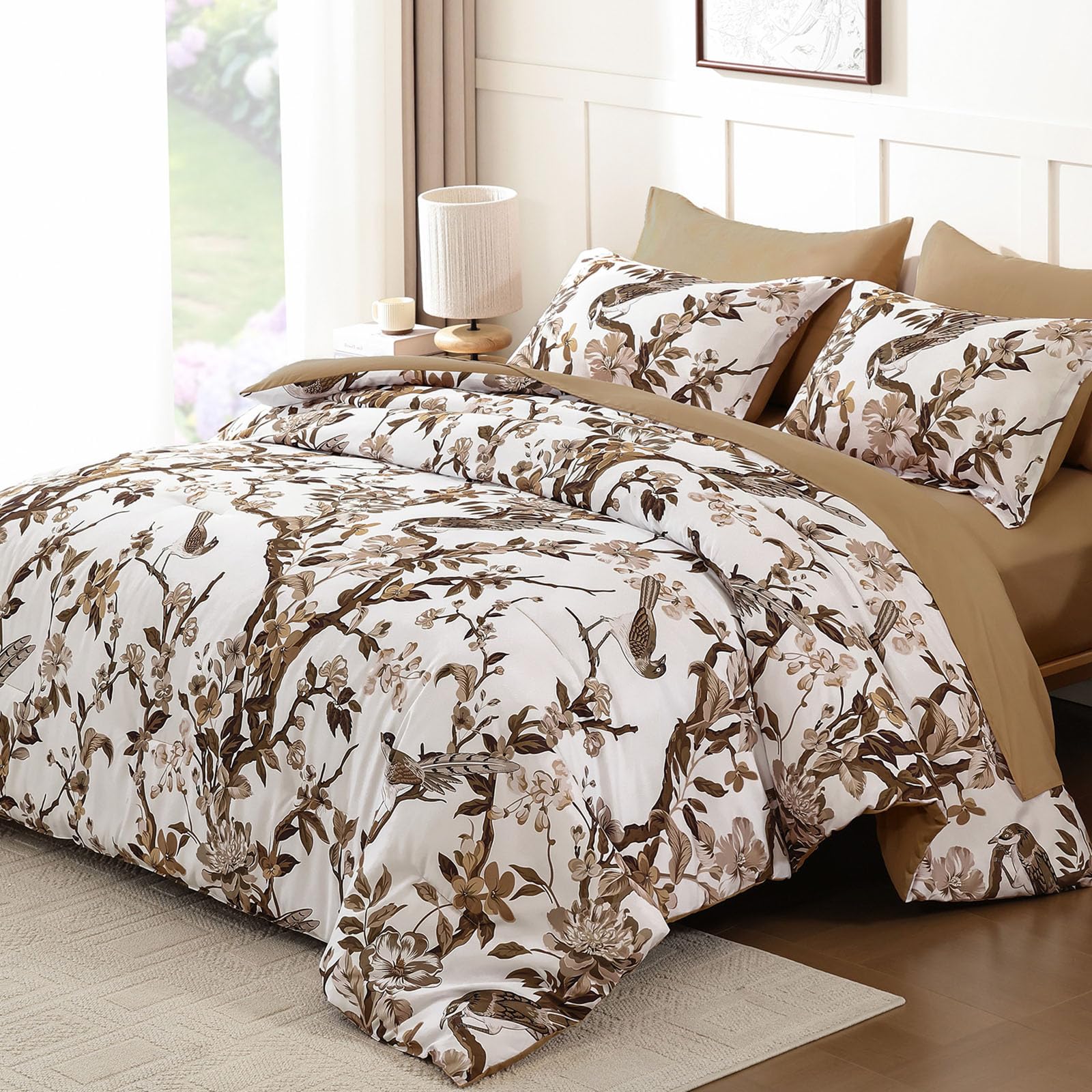 Bring the tranquility of nature into your bedroom with this brown watercolor comforter set, featuring delicate branches, blossoms, and birds. The soft microfiber construction and lightweight fill create a breathable sleep environment, while the complete 7-piece set offers effortless coordination for year-round comfort.